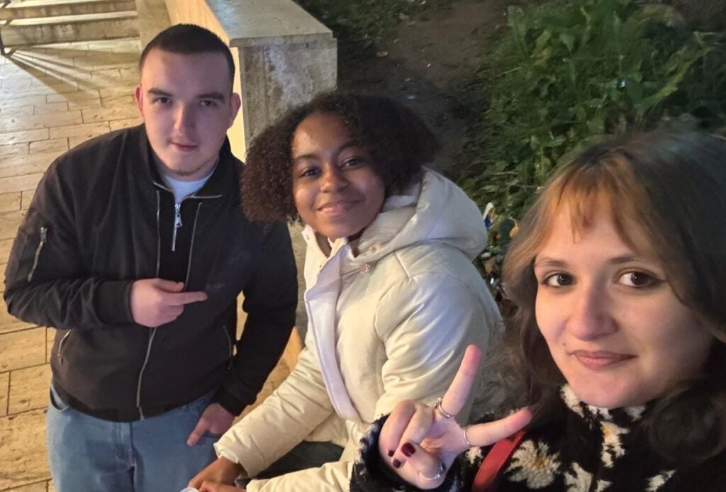 Victoriah Reed (center) pictured with two Camp Global 2024 alumni in Pristina, Kosovo